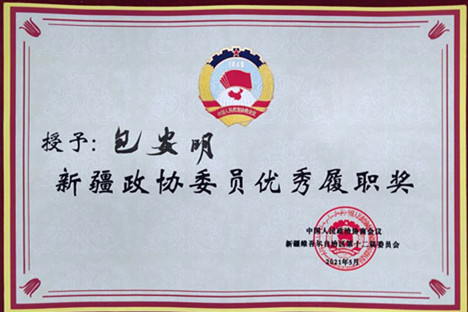 5月20日上午,庆祝政协新疆维吾尔自治区委员会成立70周年座谈会在乌鲁木齐召开,自治区党委书记陈全国对荣获2020年度“自治区政协委员优秀履职奖”的20名委员颁奖,这是自治区政协首次设立委员优秀履职奖并给予表彰,中国科学院新疆生态与地理研究所包安明研究员获得表彰。