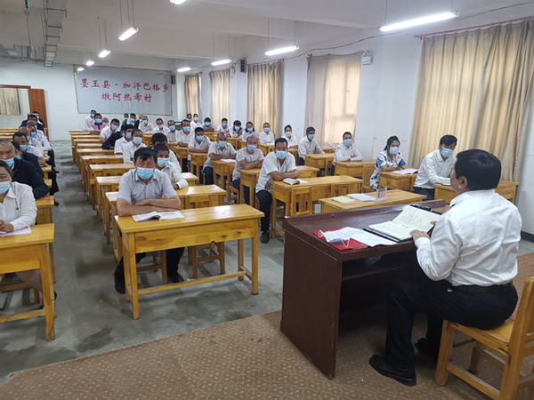 6月21日,中国科学院新疆生态与地理研究所党委副书记、纪委书记、中国科学院新疆分院驻村工作队总领队、墨玉县加汗巴格乡墩阿热希村第一书记吉力力·阿不都外力,以“永远跟党走”为题,在驻村点讲党史学习教育主题党课,驻村工作队、村干部和农牧民党员参加学习。