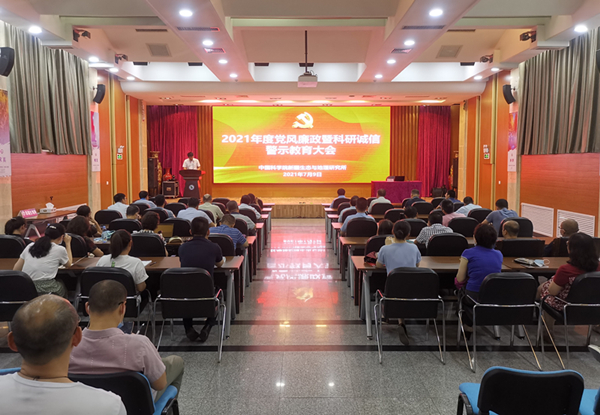 7月9日,中国科学院新疆生态与地理研究所召开2021年度党风廉政暨科研诚信警示教育大会,研究所党委副书记、纪委书记吉力力·阿不都外力作了题为《学党史、守初心、遵法纪、筑防线》的警示教育专题报告,研究所副所长孙福宝主持会议。
