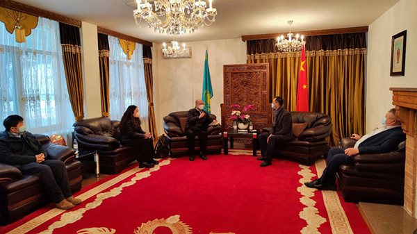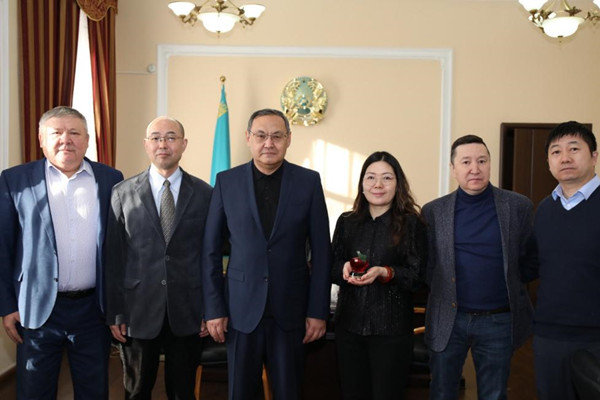 与中国驻阿拉木图总领馆科技处张伟交流
