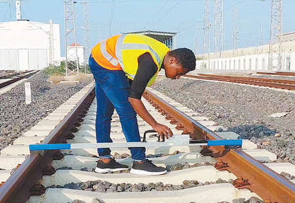奥斯曼在亚吉铁路的一座车站进行巡检。 中国土木工程集团吉布提有限公司供图