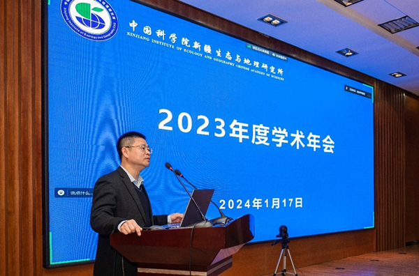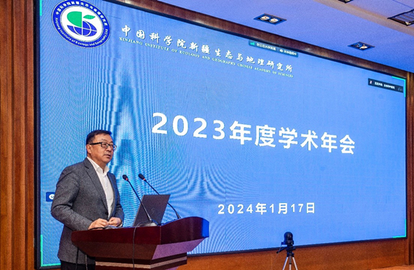 1月17-18日,中国科学院新疆生态与地理研究所召开2023年度学术年会,此次年会邀请到北京大学副校长朴世龙院士、中国科学院新疆分院院长肖文交院士和中国科学院西北生态环境资源研究院副院长康世昌研究员作特邀报告。中国科学院科技促进发展局大气海洋与生态环境处处长任小波、新疆维吾尔自治区科技厅社会发展与基础研究处副处长杨晓平、新疆生产建设兵团科技局社会发展处三级主任科员王杰君、中国科学院新疆分院分党组书记陈曦和分党组副书记、纪检组组长安尼瓦尔 买买提出席会议,研究所领导班子成员、学术委员会委员、科研团队负责人、骨干及研究生等百余人参加会议。
