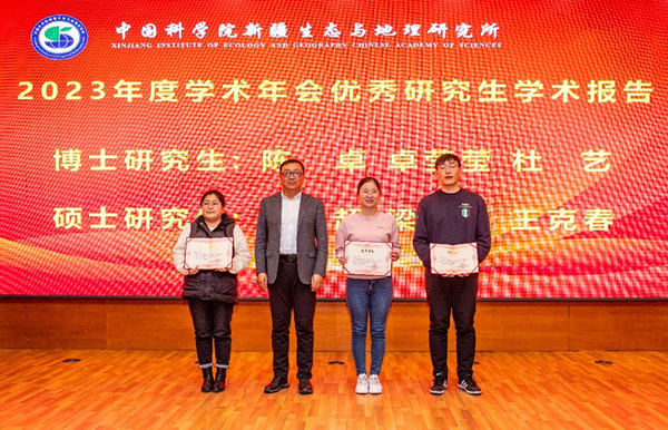 为激励研究生,提升其展示和表达能力,本次年会对参加汇报的16名研究生进行了优秀学术报告评选,最终评选出6名优秀研究生报告奖,张元明所长和张道远副所长为获奖者颁奖。