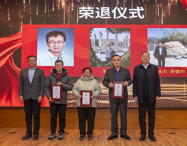 大会还举行了2023年新疆生地所荣退仪式,张元明所长、张向军书记为2023年退休职工代表颁发了纪念证书。