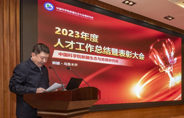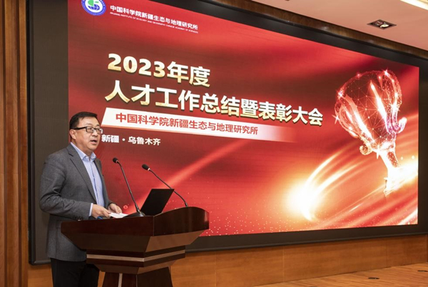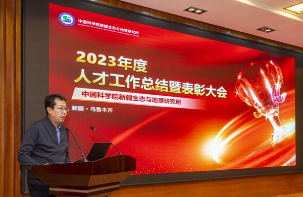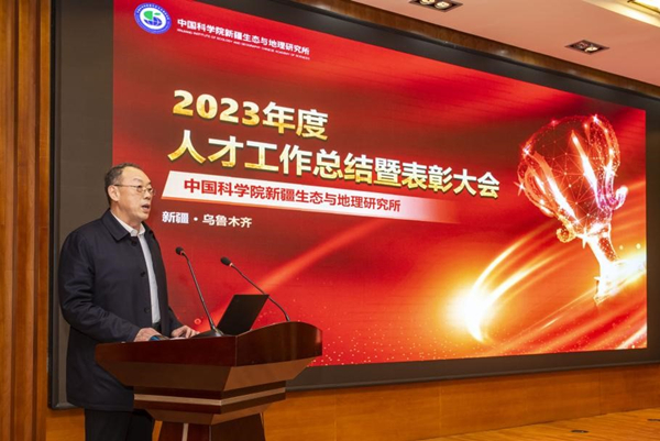 1月31日,中国科学院新疆生态与地理研究所召开2023年度人才工作总结暨表彰工作会议。中国科学院新疆分院分党组副书记、纪检组组长安尼瓦尔 买买提,自治区人社厅留学人员和专家服务中心主任古丽拜克 阿合买提,自治区科技厅引进智力与人才服务处副处长刘宝应邀参加会议。新疆生地所所长张元明,党委副书记、纪委书记吉力力 阿不都外力,副所长张道远,各研究部门负责人、团队PI、职能部门、支撑部门负责人及各类人才代表参加会议。新疆生地所党委书记、副所长张向军主持会议。