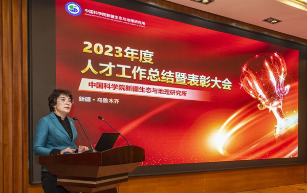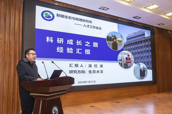 新疆生地所人事处处长蒋慧萍作了题为《高质量推进人才高地建设,抢占干旱区生态环境领域科技制高点》的工作报告。人才代表李诺、凌红波、杨震雷分别围绕团队人才队伍建设、个人成长经历及来疆工作生活感悟等做交流,分享经验。