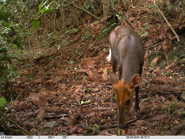 余顺海:去年8月,我们通过红外相机拍到一母二孩三只黑熊同框的温馨画面,表明钱江源园区内有稳定的黑熊种群;森林中还有当地老百姓称为“四不像”的神奇动物——中华鬣羚,它们喜欢在草丛、乱石山崖上跳跃,行动敏捷,机警灵活,属国家二级重点保护动物。黑麂,是一种可以与大熊猫相媲美、中国特有的国家一级重点保护动物。它因染色体数目稀少且雌雄各异而显得格外奇特,它也是研究哺乳动物染色体演化的天然实验动物,在钱江源园区目前约有500至800只黑麂,约占全球数量的10%,是我国野生黑麂主要集中分布区。