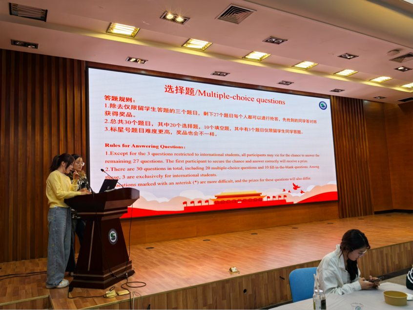 在大家制作月饼的间隙,活动还穿插了轻松有趣的中秋以及国庆知识问答。主持人提出的问题引发了师生们的踊跃参与,大家纷纷抢答,一份份精心准备的节日礼物在惊喜中送出,为整个活动增添了更多智慧与乐趣。