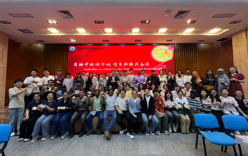 中秋团圆时刻,恰逢新疆维吾尔自治区成立70周年以及国庆节,让今年的节日在温馨之外更添一份喜庆与豪情。为传承中华优秀传统文化,增进中外师生的相互了解与友谊,新疆生地所研究生教育处于9月30日成功举办了以“月映中秋颂华诞,情系新疆共奋进”为主题的中秋国庆庆典。研究所张元明所长、段伟利副所长及六十余位中外师生参加活动,通过观看纪录片《天山放歌》和亲手制作象征团圆的月饼,以及妙趣横生的中秋知识问答等环节,大家在欢声笑语中深入感知国庆节和中秋节的独特魅力,活动现场洋溢着温馨喜庆的浓厚节日氛围。